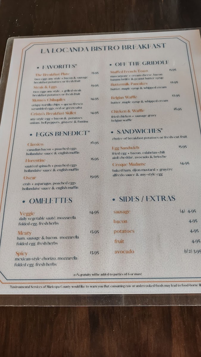 Welcome to La Locanda Italian Bistro, a culinary gem nestled in Old Town Scottsdale. Here, the essence of authentic Italian cuisine shines through a thoughtfully curated menu that emphasizes quality and flavor. Starting with the Antipasti E Insalate, the Traditional Bruschetta and Spicy Mussels set a delightful tone for your dining experience. As you venture into the Primi, the Gnocchi with its rich Tomato Cream Sauce is a must-try, embodying comfort and indulgence.